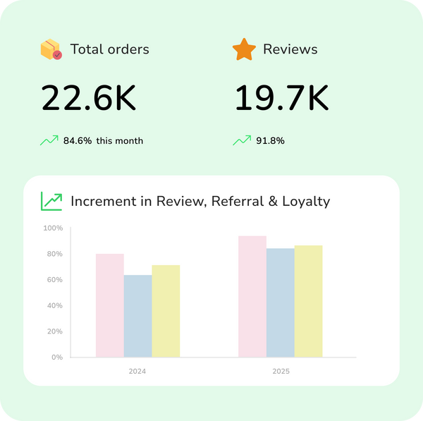 Make everything match your store’s look and feel. Customize colors, fonts, layouts, review placement, loyalty rules, and referral rewards—so your brand stays unique and consistent everywhere.